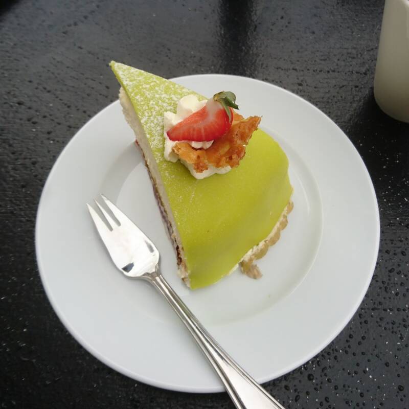 Toen ik deze taart in Zweden tegen kwam was ik meteen om! Altijd als we ergens een 'bakkie' gaan doen tijdens een Zwedenvakantie neem ik z'on lekker stuk marsepeintaart, meestal zijn ze groen van kleur maar je ziet ook wel andere variaties. (waar ik in Nederland altijd koos voor 'Het Kasteeltje' is dit nu mijn absolute favoriet geworden in Zweden)